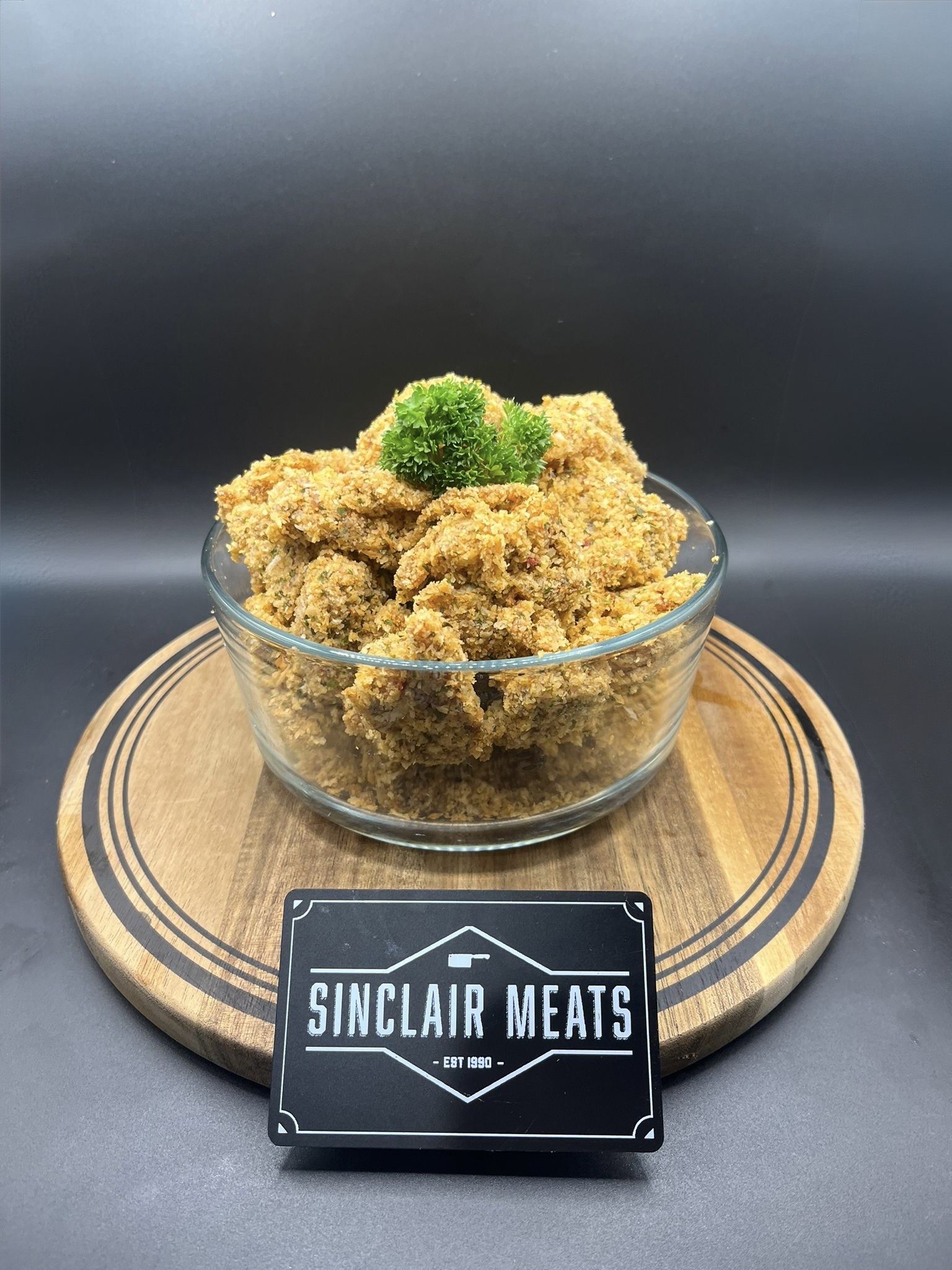 Fresh chicken breast bites coated with our delicious Kentucky coating mix. Great for snacking !